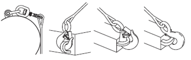 Las cargas serán centradas en la base del gancho para evitar cargas en la punta del gancho.