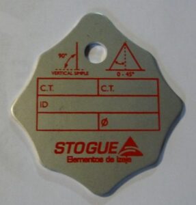 -Etiqueta identificatoria, en la misma debe figurar el nombre del fabricante, carga máxima de uso, numero de serie o lote que nos permita tener trazabilidad del elemento, fecha de fabricación.